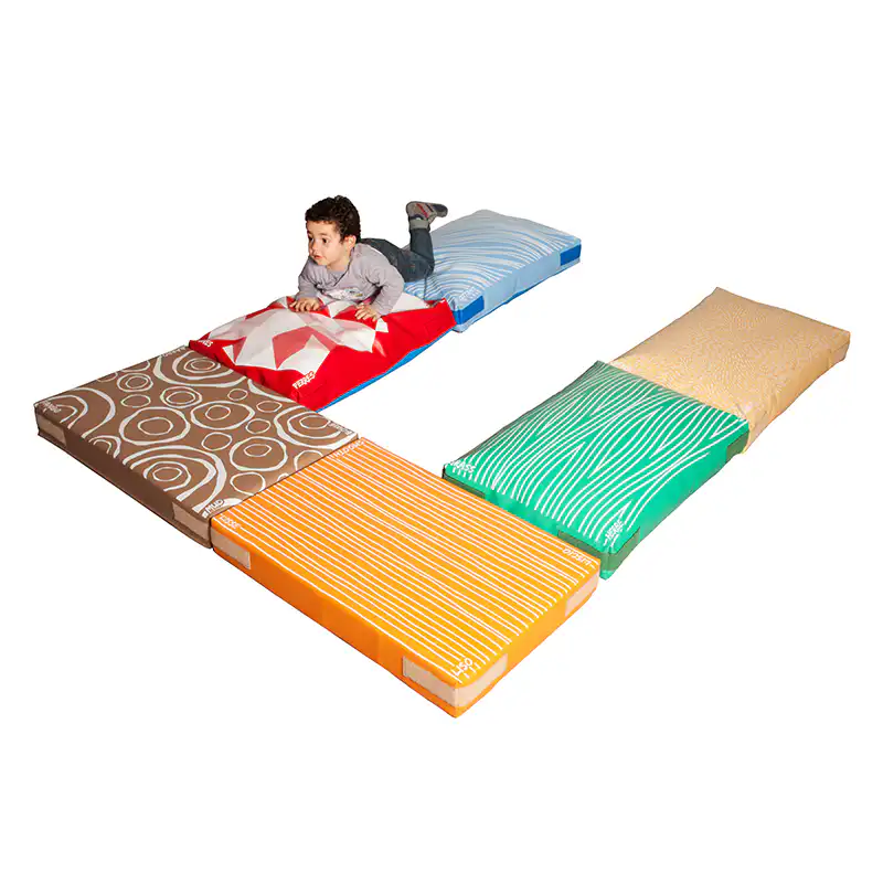 Con un diseño único, los bloques de psicomotricidad sensorial simulan seis superficies diferentes, permitiendo a los más pequeños descubrir nuevas texturas y sensaciones. Se trata de cojines con distintos colores y rellenos que emulan terrenos reales como barro, arena o piedras, entre otros.